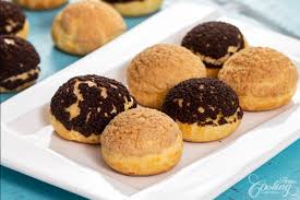 Soften the butter with the sugar. Add the flour and cocoa then spread between two plastic sheets. Cut into 2 cm disks. place on top of eclair or choux and ake at 160℃